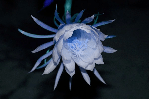 Mungkin Anda bertanya-tanya, benarkah bunga ini bersinar seperti kunang-kunang? Sebenarnya, Night-Blooming Cereus tidak menghasilkan cahaya bioluminesensi seperti beberapa makhluk laut. Namun, pantulan cahaya bulan atau cahaya lampu yang redup pada kelopak putihnya yang besar menciptakan ilusi seolah-olah bunga ini memancarkan cahaya lembut. Efek ini diperkuat oleh aroma kuatnya yang memenuhi udara malam, menciptakan pengalaman yang benar-benar magis.
